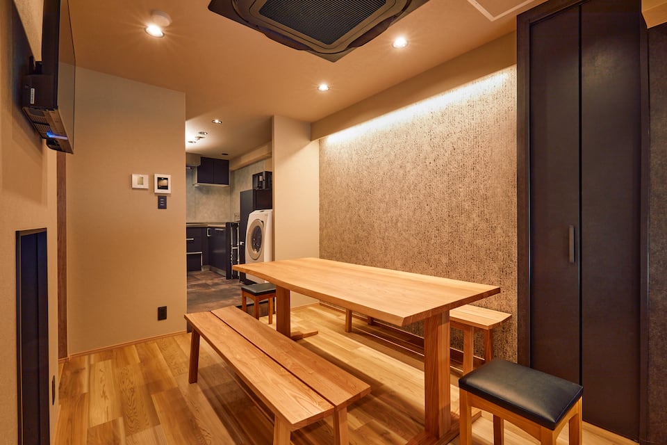 這間住宿位於九條,離主要的地區五條有一點點距離,這間其實現場比照片還要好看,充滿日式元素,設計上很用心,連天花板都有設計,這間住宿算是相當滿意,就算當天有半天不出門,待在家裡也是很舒服的一間。